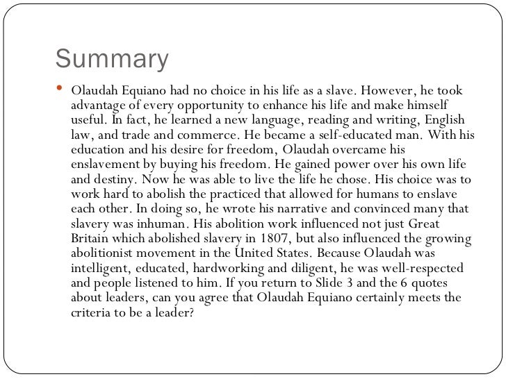 The book describes Equianos time spent in enslavement and documents his attempts at. Why was he was able to forget about his misfortunes. Summary of The Interesting Narrative of the Life of Olaudah Equiano or Gustavus Vassa the African.